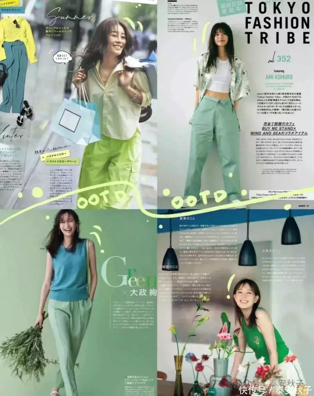 以浅绿色为基调,带有微量的蓝、黄调的薄荷曼波绿色,从去年一直爆火到如今。
