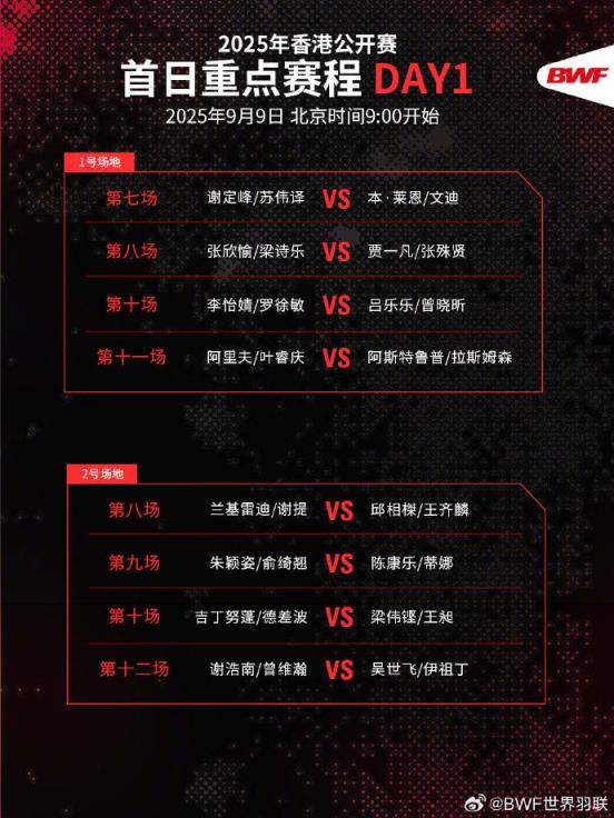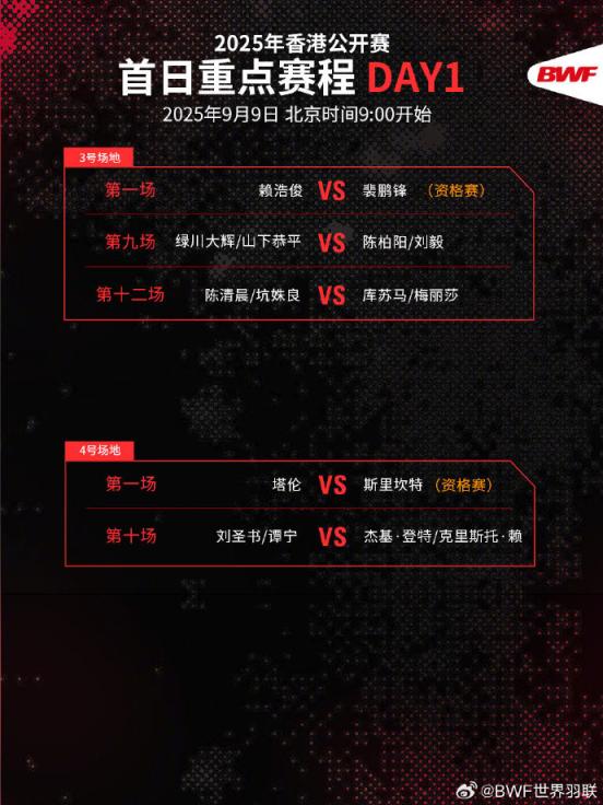 2025年中国香港羽毛球公开赛将于9月9日至9月14日举行。梁伟铿、王昶、刘圣书、谭宁等国羽选手今日出战。戳↓重点赛程,一起为国羽助威!